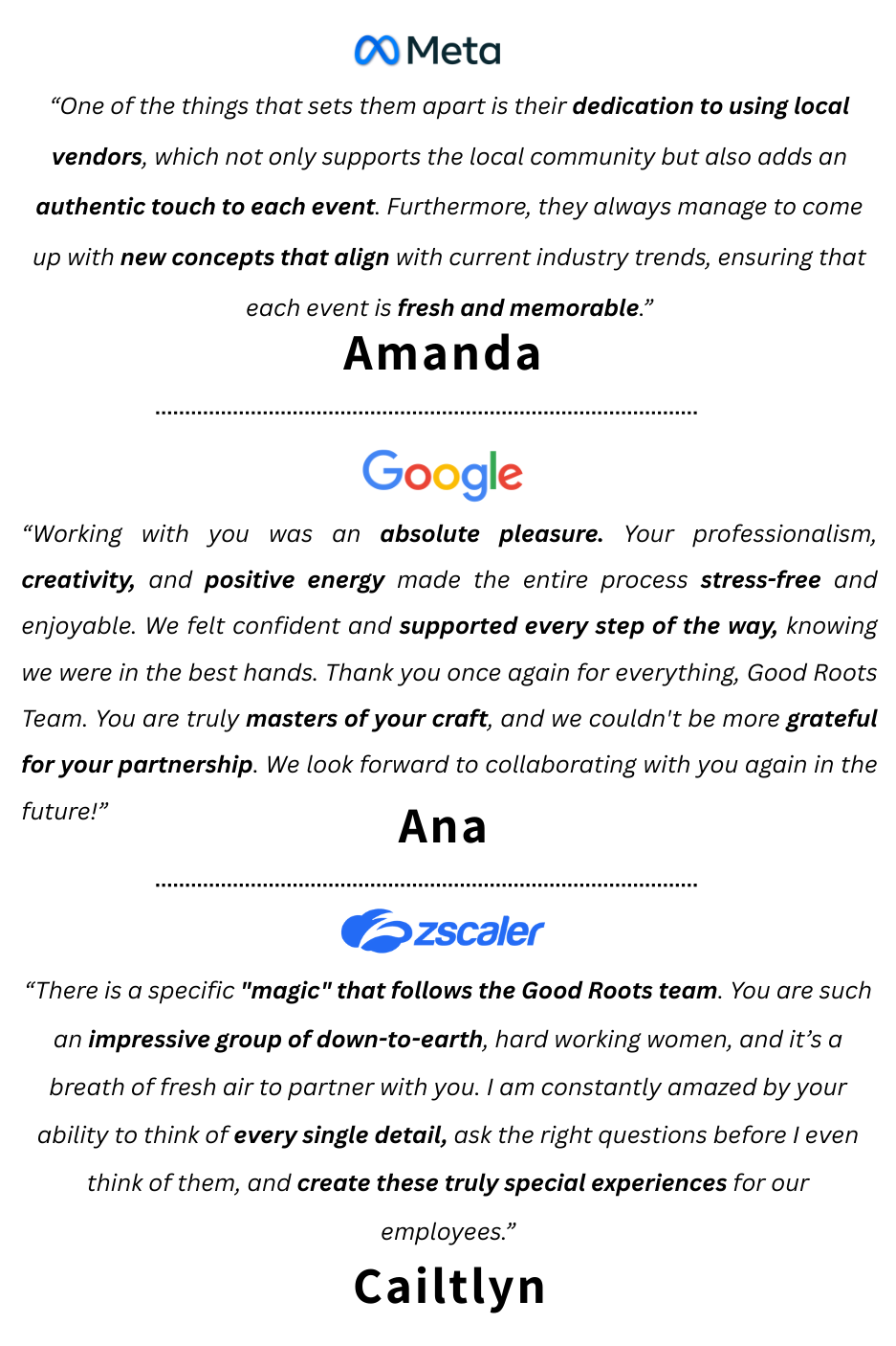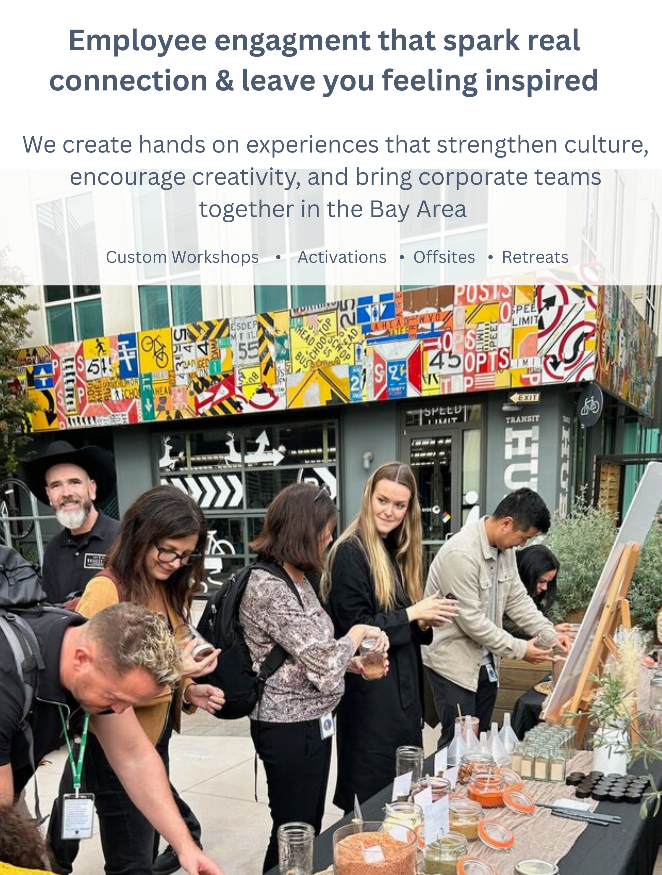 ABOUT USWe design immersive, turn-key experiences that foster connection, collaboration, and sustainability by showcasing the best of the Bay Area’s culture through thoughtfully curated events.